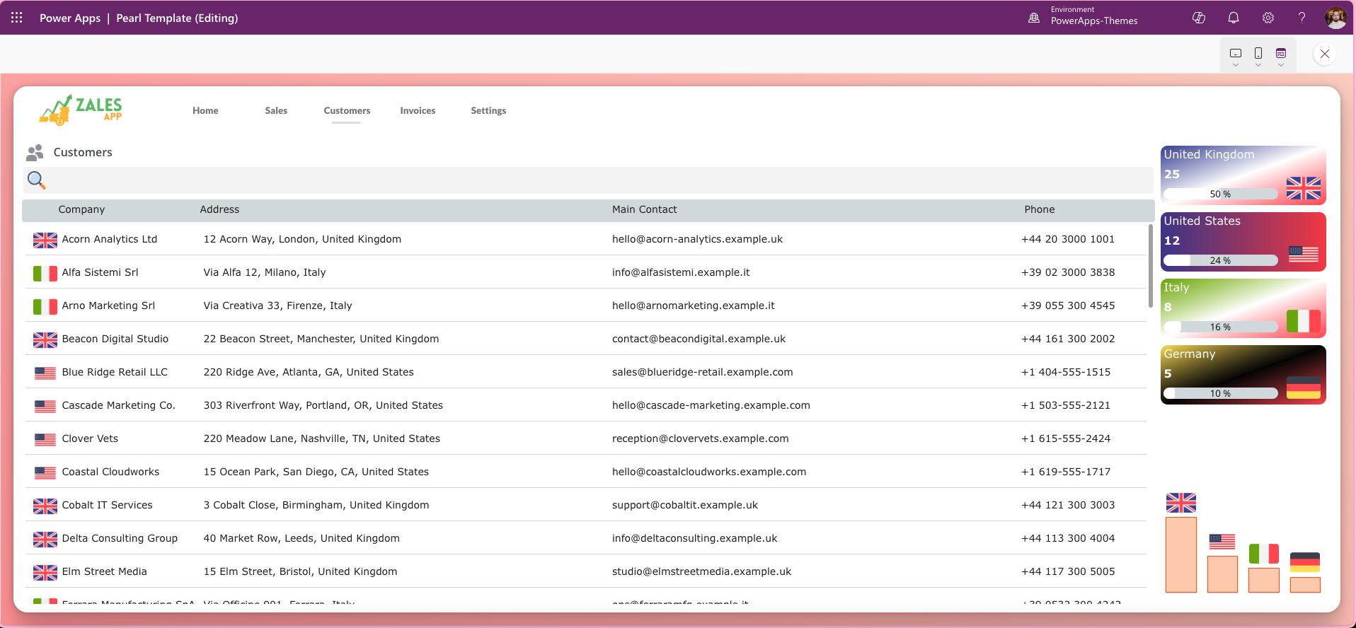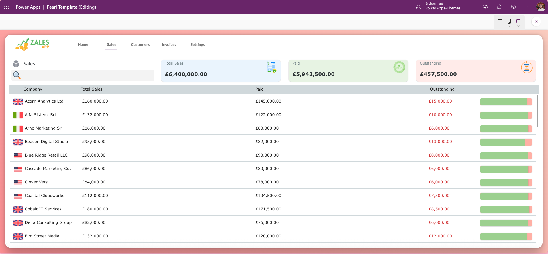 The Zales App Template is a Power Apps canvas app designed to accelerate dashboard creation with a polished, modern interface. It offers:
